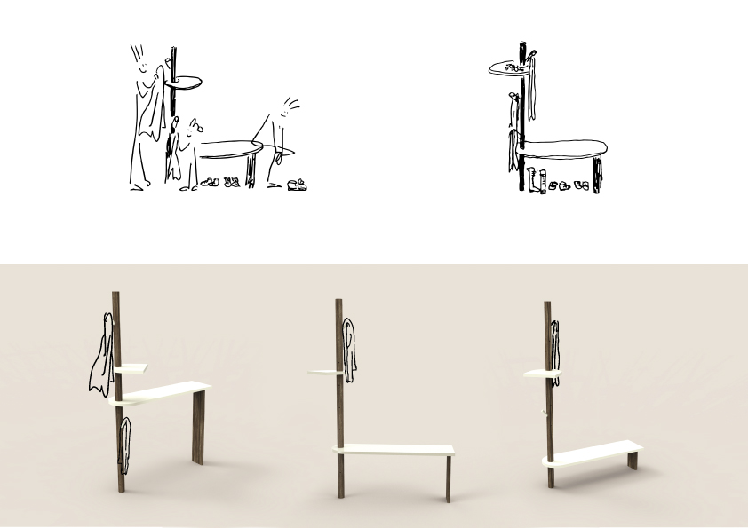 Lama is a welcoming console, bench, and coat hanger.